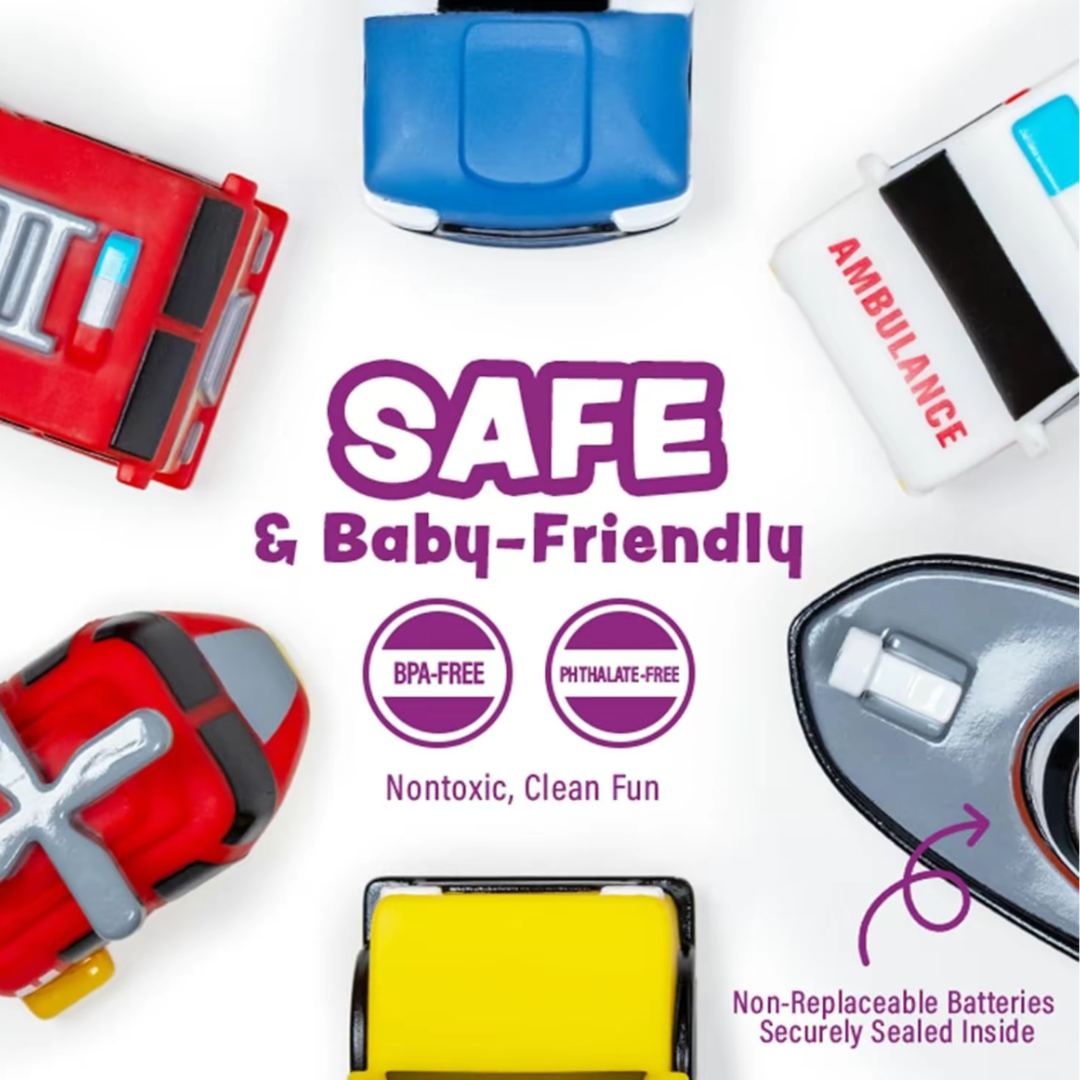 Flashing lights activate instantly when touching water — turning every bath into a rescue adventure!