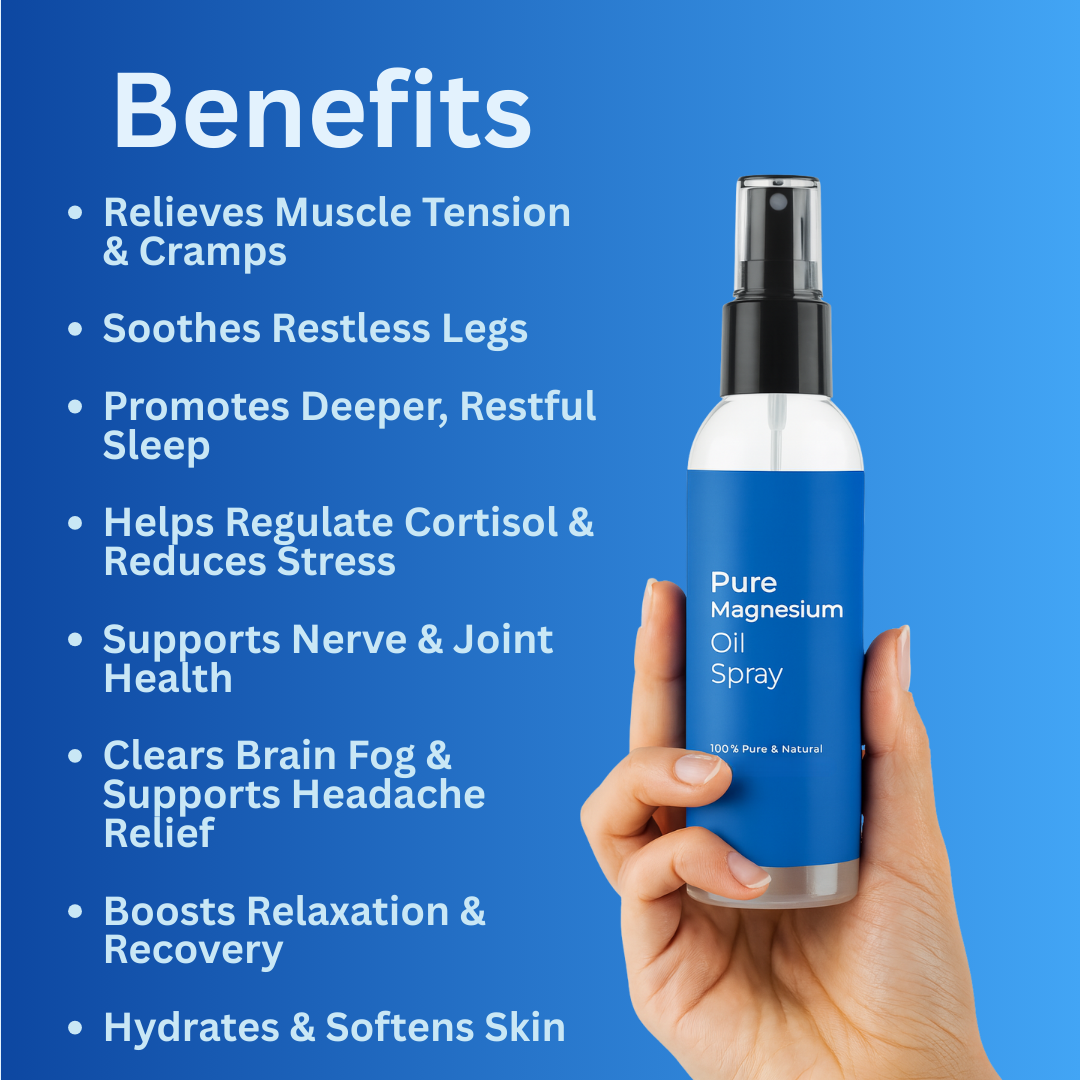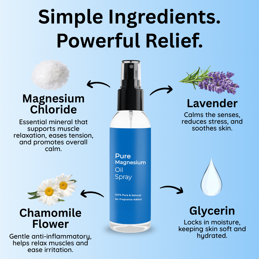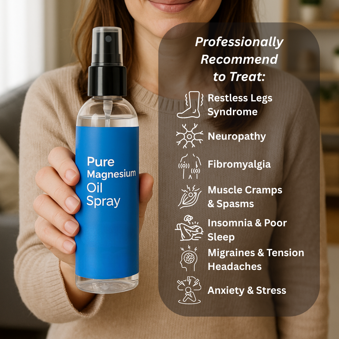 Experience instant relief with our Pure Magnesium Oil. Whether it’s sore muscles, joint stiffness, or everyday tension, magnesium works deep beneath the skin to calm inflammation and ease discomfort. Just a few sprays deliver a soothing, cooling sensation—no pills, no chemicals, just nature doing its job. Perfect after workouts, long days, or whenever your body needs a break.